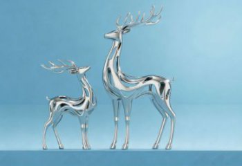 • 鏡熠靈蹤:雙鹿鏤空抽象不銹鋼景觀雕塑